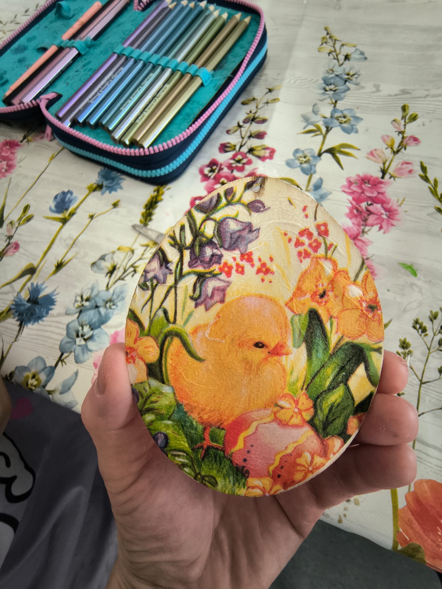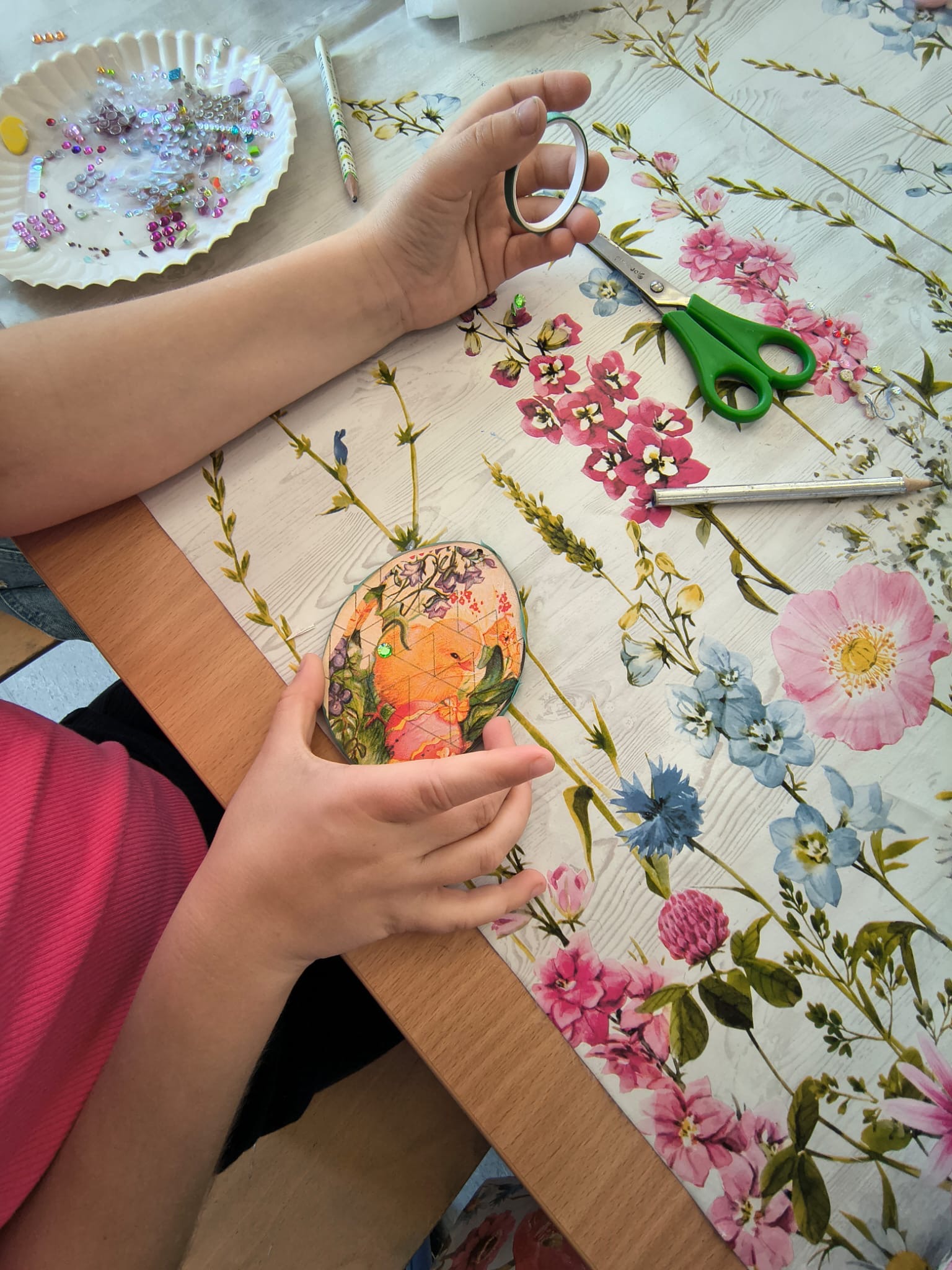- dekorowały metodą decoupage drewniane kształtki w formie jajeczek,