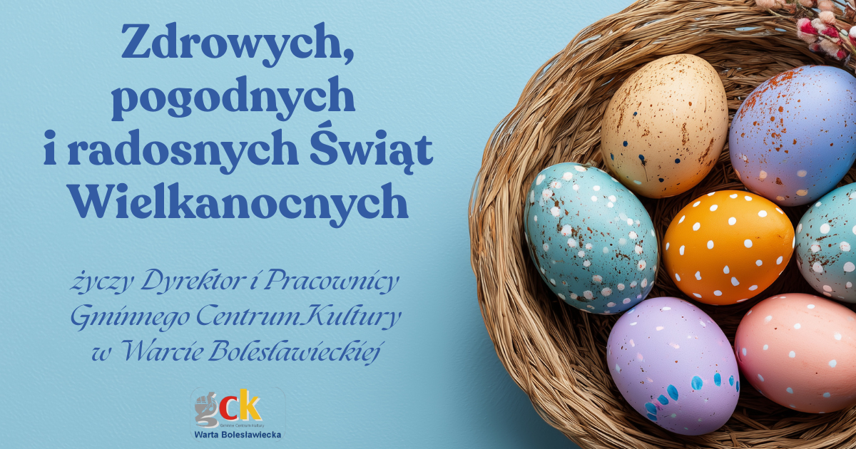Zdrowych, pogodnych i radosnych Świąt Wielkiej Nocy życzy Dyrektor i Pracownicy Gminnego Centrum Kultury w Warcie Bolesławieckiej.