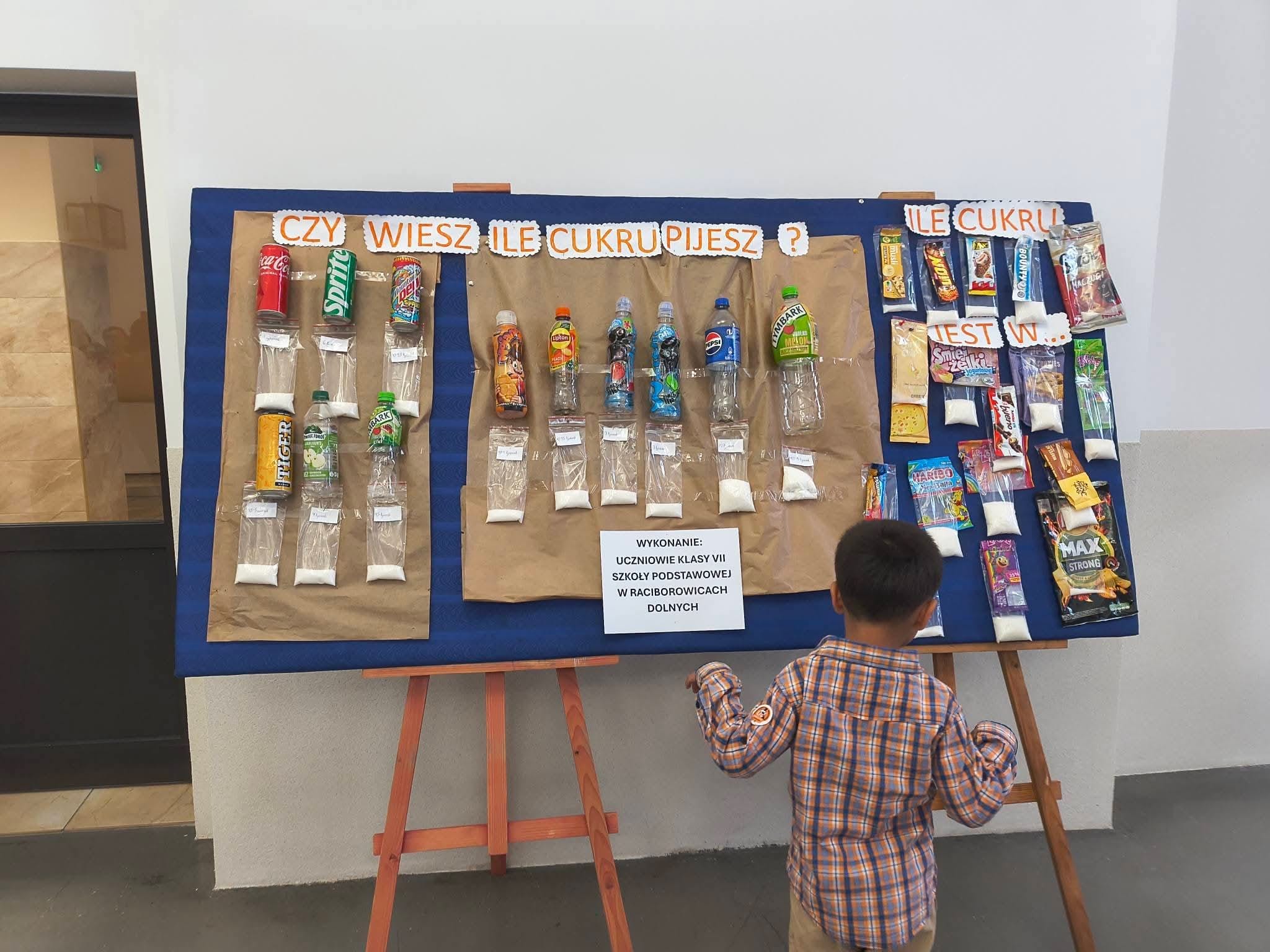 Uczestnicy spotkania, poza sporą dawką wiedzy, mogli oczywiście skosztować deserów 🍧🍮🍪 konkursowych oraz tych, przygotowanych specjalnie na spotkanie przez @KGW Tomaszów Bolesławiecki. Świetne uzupełnienie całości stanowiła gazetka opracowana przez uczniów klasy VII Szkoły Podstawowej w Raciborowicach Dolnych, która bardzo obrazowo pokazywała zawartość cukru w popularnych i łatwo dostępnych produktach 🥫🍿🧃.