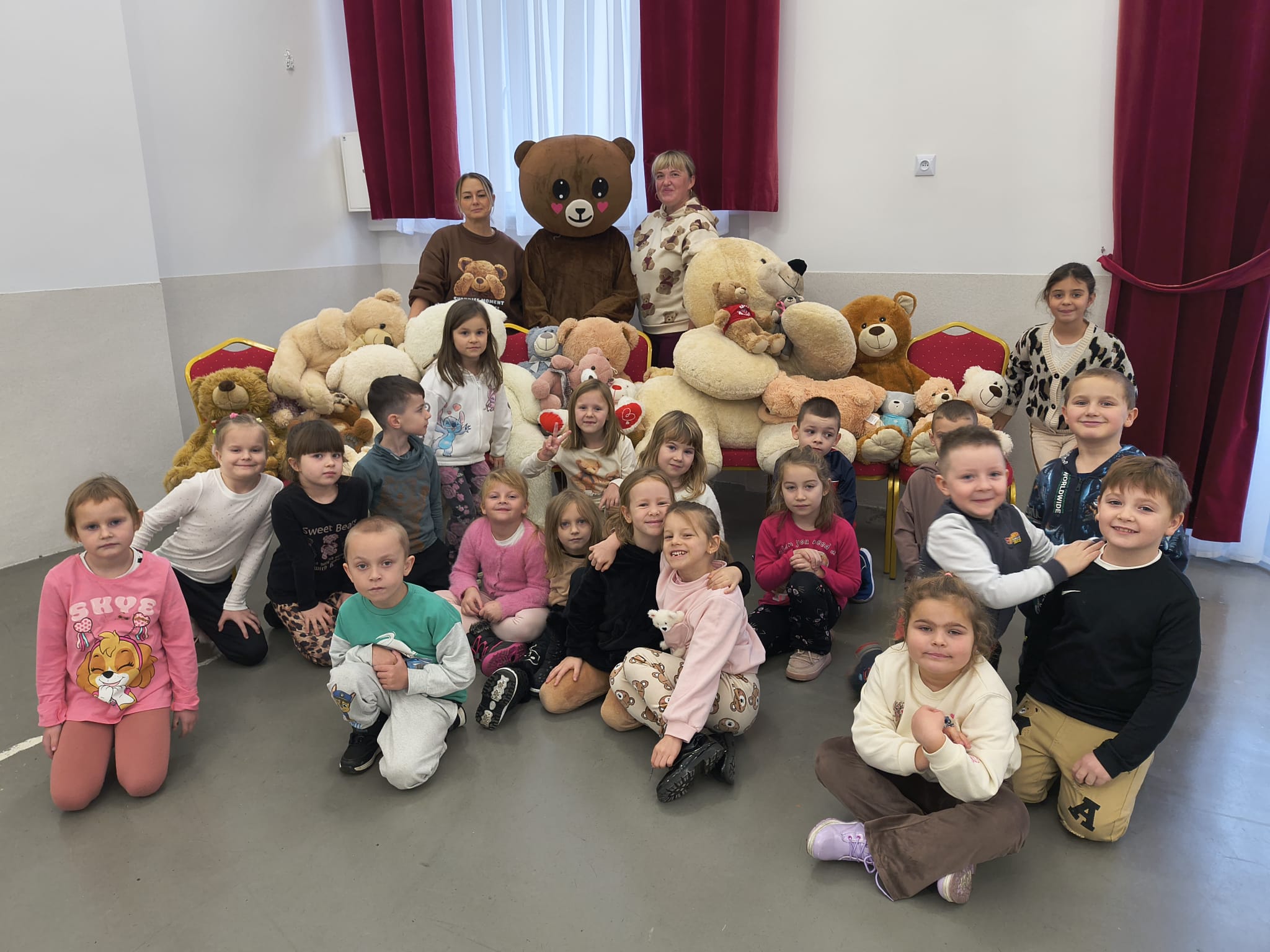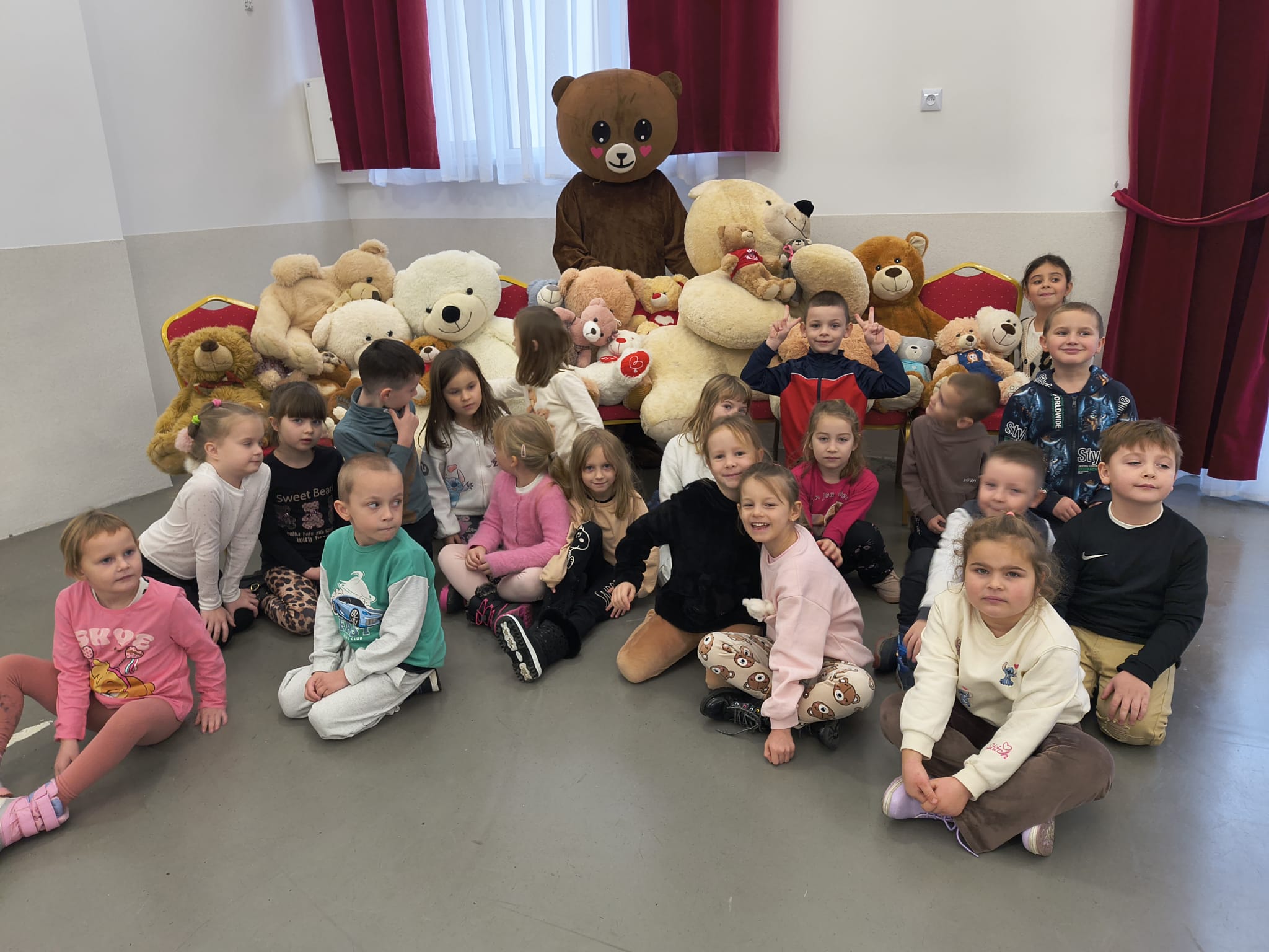 Nasz pluszowy miś - FIFI - nie był sam, towarzyszyła mu liczna gromada mięciutkich przytulanek przyniesionych przez dzieci.
